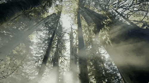 森林布满苔藓青衣,高耸的杉树屹立千年。