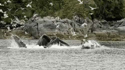 大熊雨林附近的海域中,动物资源也很丰富。鲸鱼、海豹、海豚、海獭、海狮的身影时常出现。